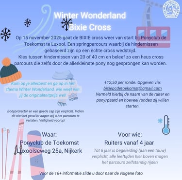 Op 15 november 2025 zal de BIXIE cross weer van start gaan. Na een aantal jaren succesvol dit evenement voor de allerkleinste succesvol georganiseerd te hebben krijgt het dit jaar een extra jasje. Na veel vraag is er nu ook; BIXIE cross 16+